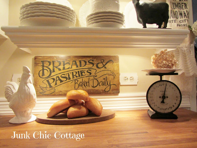 Wow, Kris ... love our new shelves! And, you've styled them beautifully. I love the vintage feel and "want" your bread and pastries sign! I can see why you were one of the top three at Savvy Southern!