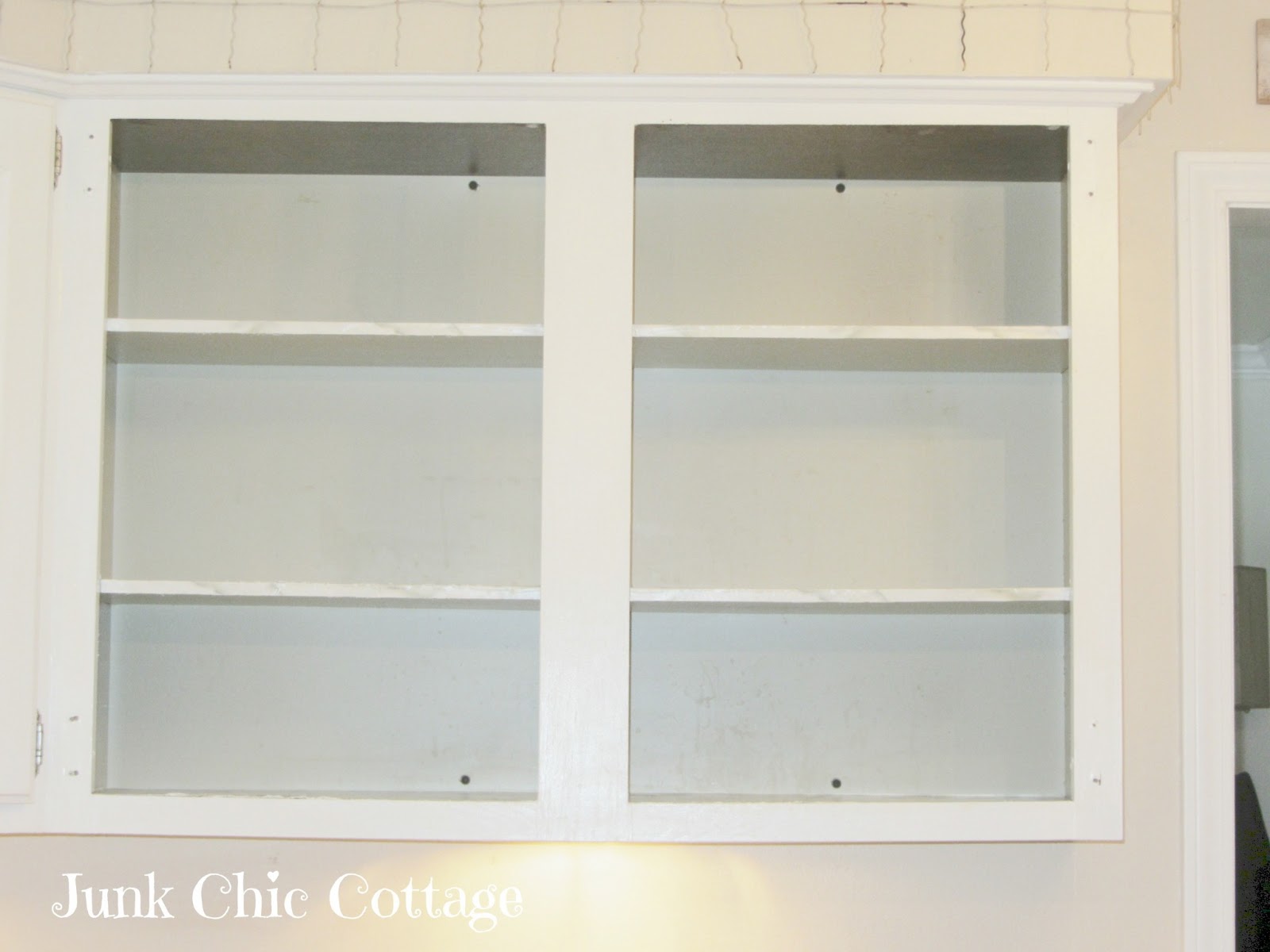 | My husband made me two new shelves to replace the cabinets. |