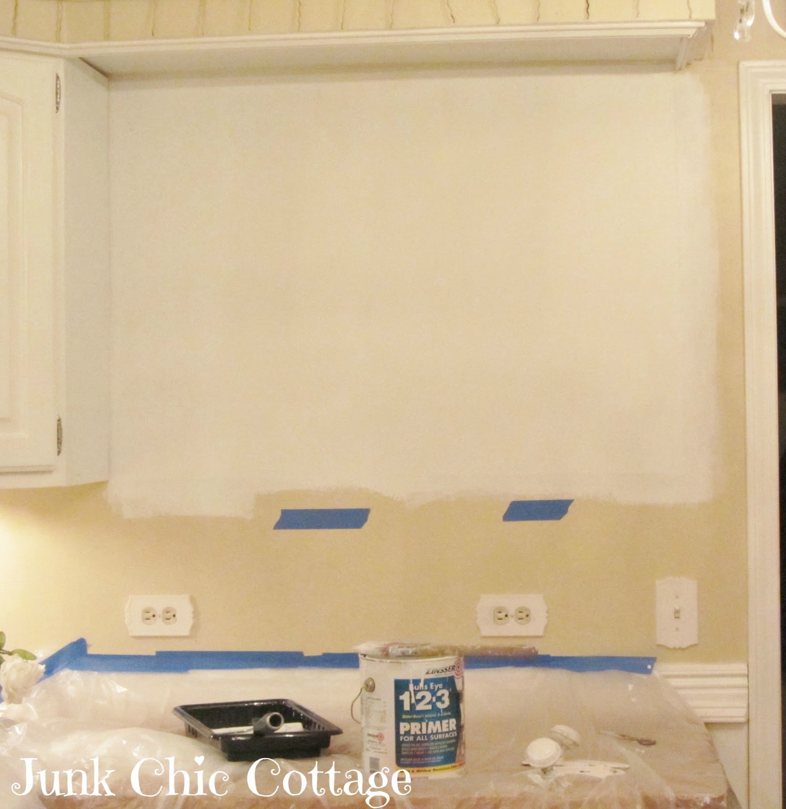 | A little bit of primer on the wall where the cabinet was. |