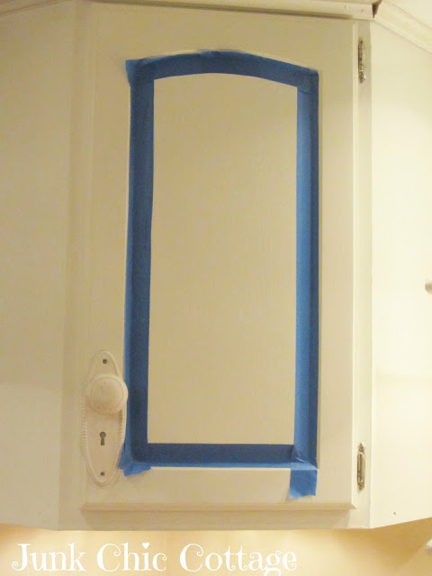 | So I painter's taped off the center of the cabinet. |