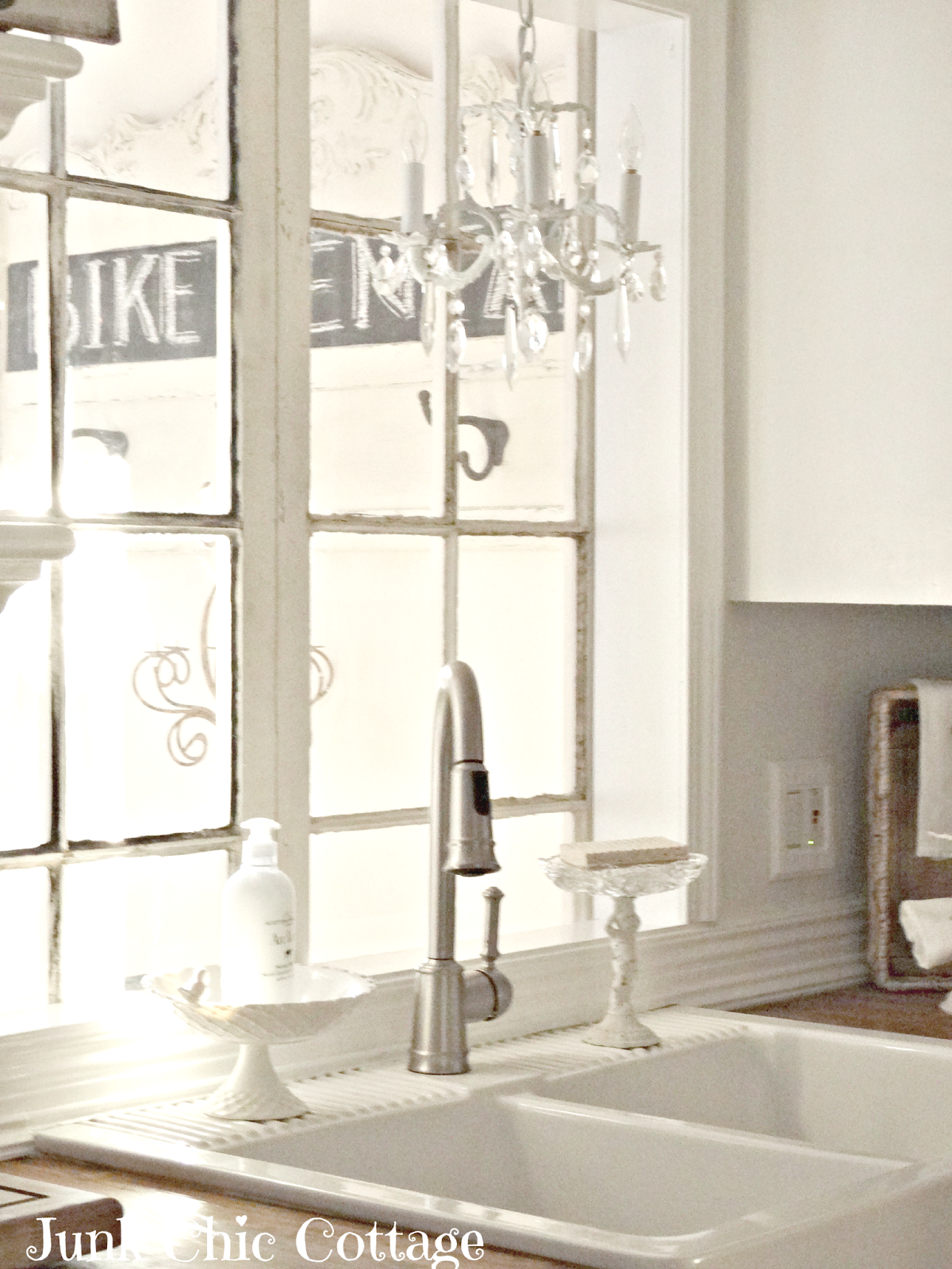 ReplyDeleteI love your farmhouse sink and the double chandeliers along with all the white and chalkboards. Sweet!